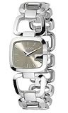 Polished stainless steel case with a polished stainless steel bracelet. Fixed bezel. Brown dial with silver tone hands and stick hour markers. Quartz movement. Scratch resistant sapphire crystal. Case diameter: 24 mm. Case thickness: 8 mm. Jewelry clasp. Water resistant at 30 meters / 100 feet. Functions: hours, minutes. Gucci Womens G Gucci Watch YA125507.